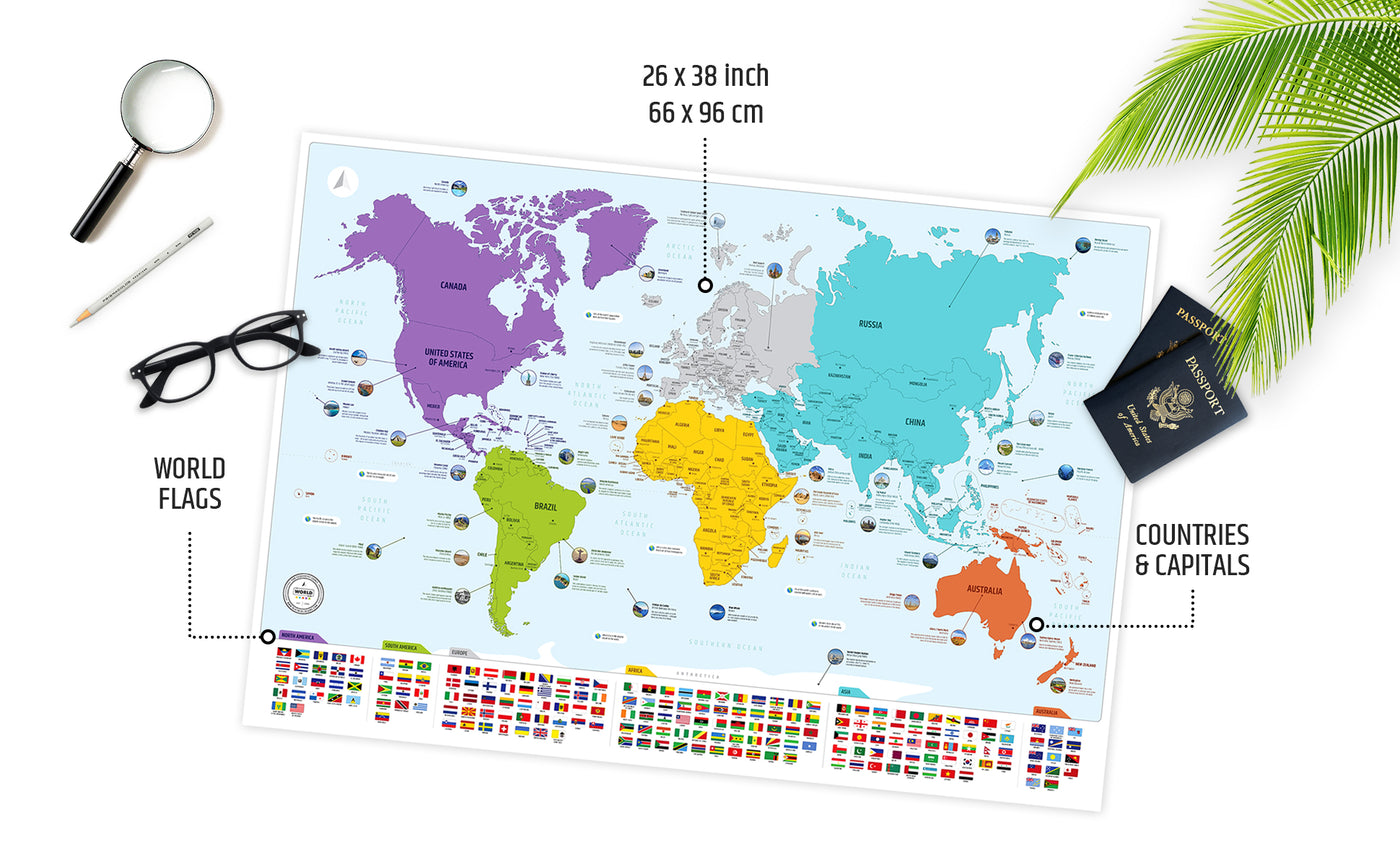 Če želite spoznavati svet ali ste navdušen popotnik, vas bodo navdušile informacije, predstavljene na tem zemljevidu. To je odlično darilo za vsakogar, ki je po srcu raziskovalec.